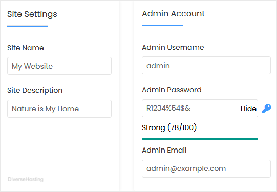 • Admin Password: Use a strong password.