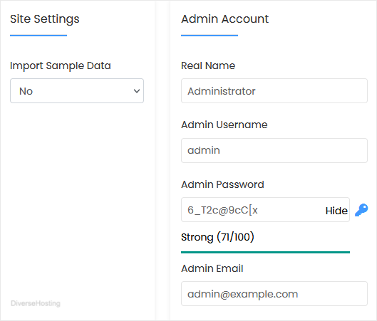 • Admin Email: Your e-mail address.