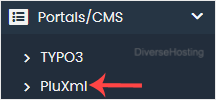 4. On the left side, locate the Portal/CMS category. Click on it and then on the PluXml link that appears.