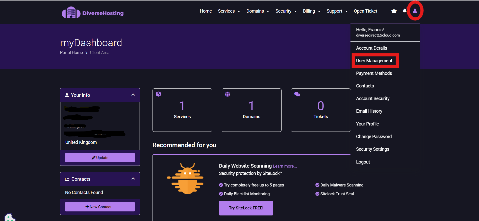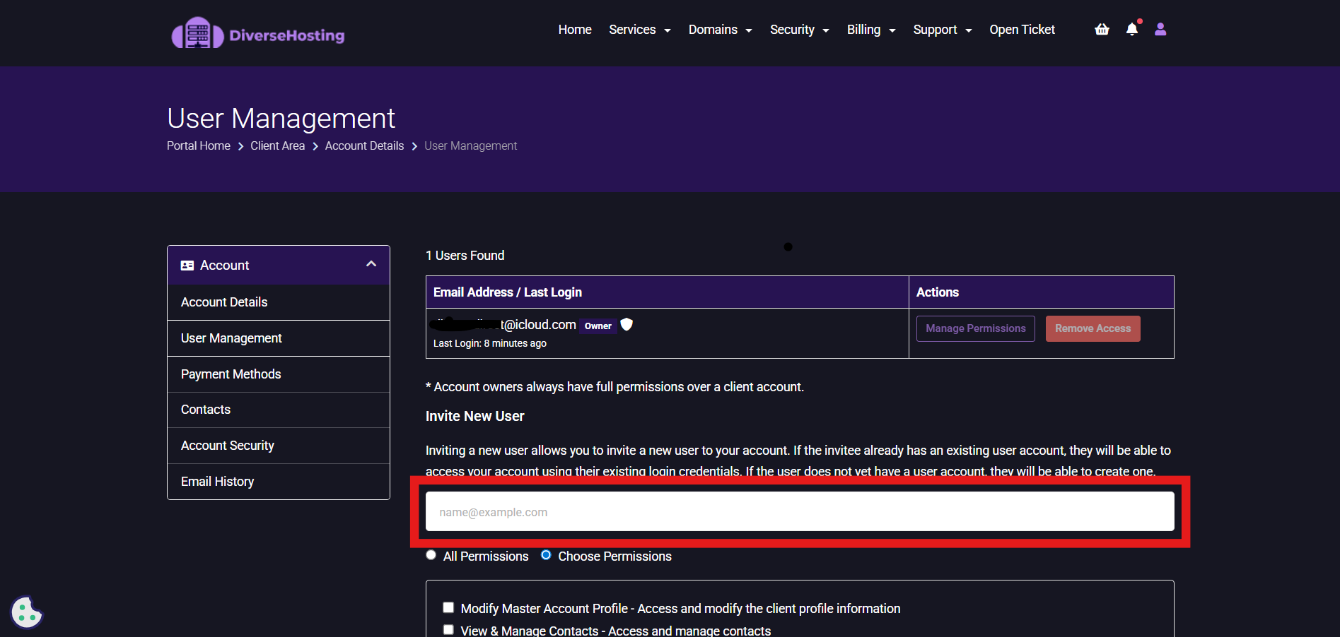 This guide explains how to add a new user to your DiverseHosting Client Area.