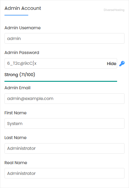 • Admin Username: Your new GRAV username (for security reasons, do not use the administrator or the admin username).